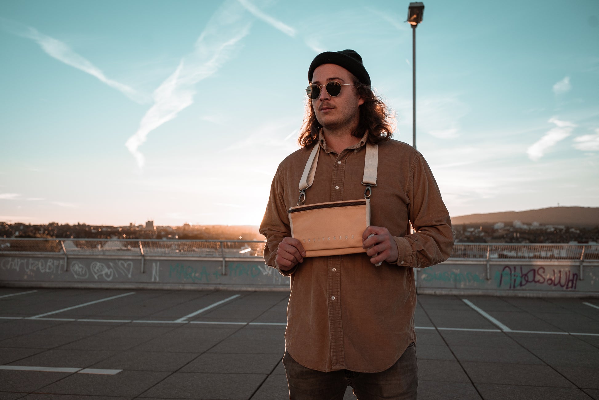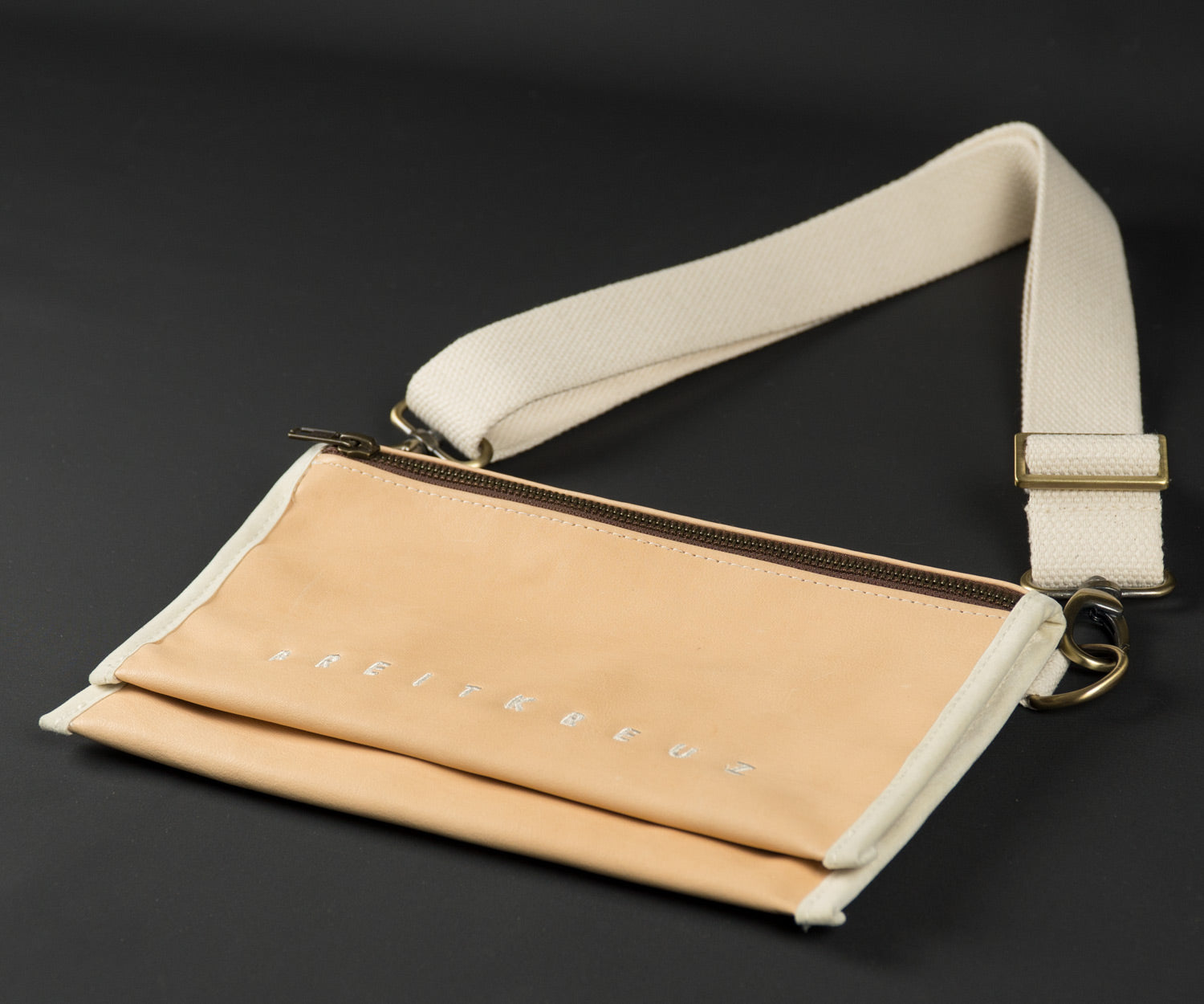 Natural Cross Body Bag made of leater with adjustable black straps and high-quality metal snap-links. Space for your smartphone, wallet, keys, and everything you need, keeping them safe and easily accessible.